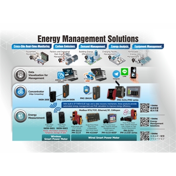 The energy management developed by ICP DAS emphasizes "Access to Electricity Consumption Information", "Electricity Consumption Safety", and "Renewable Energy and Energy Storage System Monitoring". Inquiry