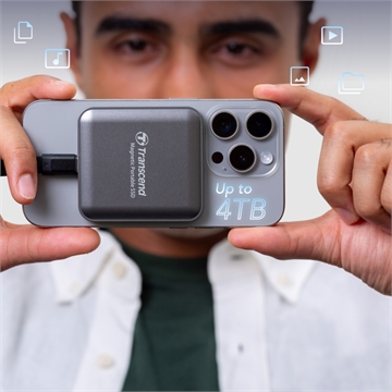 Transcend’s ESD420 portable SSD features a magnetic design compatible with iPhone models that support MagSafe. With ultra-fast transfer speeds of up to 20Gbps, capturing 4K ProRes video on your iPhone is smooth and worry-free. Offering up to 4TB of storage, it provides ample space for 4K/8K videos, high-resolution photos, documents, and more—perfect for outdoor photographers, travelers, and content creators on the go.