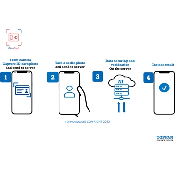 TOPPAN IDGATE technology utilizes user-friendly shooting methods for verification by cross-checking ID card images with selfie photographs.